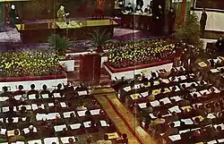 Upon entering the National Great Hall, opposition parties including CDSP and Youth requested replacing the party flag of Kuomintang with national flag, arguing the National Assembly is not party congress.[11] The authorities agreed and therefore took off the party flag.
