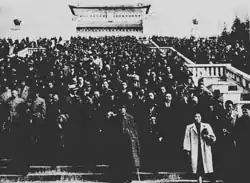 An election was held in 1936 across the nation to elect members of the Assembly, except in Japanese-occupied Northeast China which special elections substituted direct elections. The Nationalist Government invited celebrities unwilling to campaign for the election to the Assembly,[3] while members of KMT's Central Committee were designated as ex-officio members of the Assembly. CCP was unable to participate in the election due to KMT-CCP civil war and could only enter the Assembly with party-list quota. Tenure of the elected and selected members of the Assembly was extended to 1946 due to the delay of the Assembly.