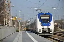 To commence operations, National Express purchased 35 Bombardier Talent 2s in 2014. These were sold back to the Rhine-Ruhr Transport Association and Westphalia-Lippe Local Transport and leased back to National Express for the duration of the contract.[13][14][15] The Rhein-Ruhr-Express services are operated by Siemens Desiro HCs.[16]