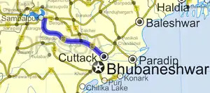 NH55 connects Sambalpur, Redhakhol, Boinda, Angul, Dhenkanal, and terminates at Cuttack in the state of Odisha.[2]