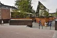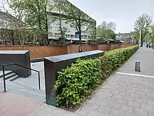 ![]() Northern Weesperstraat entrance of the memorial with huge mirrors, 2021. | |