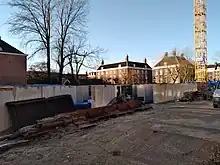 The monument founded by the Nederlands Auschwitz Comité (Dutch Auschwitz Committee) is located in the former Jewish quarter (Dutch: Jodenbuurt) on a roughly north–south strip along the west side of the Weesperstraat, clockwise from the north between Nieuwe Herengracht, Weesperstraat, Nieuwe Keizersgracht, and Amstel river, east of the Hermitage Amsterdam Museum and the Hoftuin garden.[1][2][3][4]