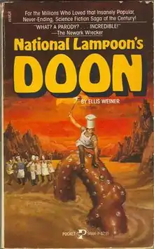 National Lampoon's Doon is a parody of Frank Herbert's 1965 science fiction novel Dune, written by Ellis Weiner and published in 1984 by Pocket Books for National Lampoon. It was reprinted by Grafton Books (ISBN 0-586-06636-5) in 1985. In 1988 William F. Touponce called the book "something of a tribute to Herbert's success on college campuses", noting that "the only other book to have been so honored is Tolkien's The Lord of the Rings," which was parodied by The Harvard Lampoon in 1969.[1]
