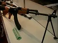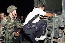The NLA was estimated to comprise 5,000 men at its peak and some of its members were trained by British SAS and Parachute Regiment officers.[13][14] As was the case with the KLA, they were fairly lightly armed – generally with small arms and mortars – though there were later reports that they had acquired FIM-92 Stinger and SAM-7 anti-aircraft missiles. As the war progressed the rebels managed to acquire heavy weapons including T-55 tanks and armoured personnel carriers captured from Macedonian government forces.[15][16]