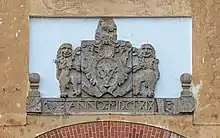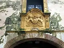 Above the Old Gate the British Coat of Arms is seen inscribed at the entrance, the inner part of the gate has an inscription, with the date, 1669, the letters VOC, (an abbreviation of Verenigde Oostindindische Compagnie, the Dutch East India Company), and the insignia of a cock flanked by two lions.[2] When the new gateway (the main or northern gate) was built by the British in 1873, piercing the main rampart between the Sun and Moon Bastions, the importance of the old gate was reduced, although it continued to be used as the main entrance to the harbour and port of Galle. During its history spanning well over three centuries, the functions of the Warehouse were many and varied. In post-independent Sri Lanka it was used as an administrative office complex until these offices were shifted to the new secretariat building outside Galle Fort. The building was subsequently reduced to a derelict building due to long years of negligence, lack of maintenance and natural decay.