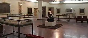 The roots of the National Museum begin with an exhibition of Indian art and artefacts organized by the Royal Academy of Arts, London.[4] The exhibition went on display in the galleries of Burlington House during the winter months of 1947–48.[5] This Exhibition of The Art of India and Pakistan in London was arguably the first exhibition sponsored by the British government which gave Indian artefacts the status of high art.[6] Before its return to India, with Jawaharlal Nehru's support, it was decided that these important collections should be showcased here upon their return so that they could be enjoyed and appreciated by the people of India. At the close of the exhibit, requests were released to the loaning museums and collectors, urging them to surrender object ownership to what was to become the National Museum.[7] When the decision was taken to make a permanent National Museum, the exhibits were first displayed in the state rooms of the Rashtrapati Bhavan (then called Government House) on August 15, 1949, and the rooms were formally inaugurated by C. Rajgopalachari, Governor General of India.[8] Until the mid-1950s, it essentially remained a permanent version of the temporary exhibit – consisting of the same pieces, and remaining in the state rooms. In 1955 building began on the new current location of the National Museum at Janpath.[9] However, when the National Museum was ready in 1960, the statue of Buddha and the Rampurva Bull were retained at the Rashtrapati Bhavan on the request of Jawaharlal Nehru.[10]