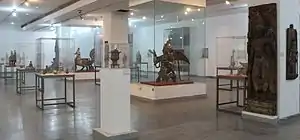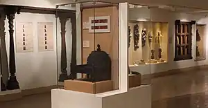 The Wood Carving Gallery of the museum not only exhibits artefacts from India, but also from Nepal, Central India and Tibet. This gallery gives glimpses of India's wood carving tradition mainly belonging from 17th to 19th centuries illustrating the different styles of wood carvings from Rajasthan, Gujarat, Odisha and South India. Collections on display include decorative and utilitarian objects, architectural elements and sculptures. A square pillar with a capital of five feet height dated 9th century is the earliest wood carving specimen in National Museum. The gallery has been curated by Anamika Pathak.[30]