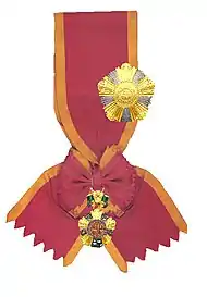 - Grand Cross - wore the badge of the Order on a sash on the right shoulder, plus the star of the Order on the right stomach OR just the star of the Order on the left stomach;