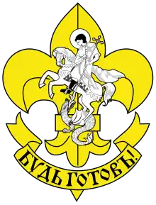 In 1926, the now traditional and still used Russian Scout and Guide badges were introduced:[1] For the Scouts the Fleur-de-lis with Saint George and for the girls the three Snow-Drops.