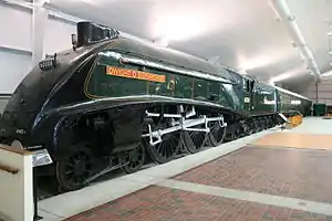 | London and North Eastern Railway | A4 4-6-2 | 4496 Dwight D. Eisenhower | Only A4 class steam locomotive in the United States, and one of two displayed in North America; the other being 4489 Dominion of Canada. It was temporarily displayed in England for the reuniting of the remaining six A4s. In 2014, the locomotive was returned to the museum. During its display in England, the locomotive was repainted to the accurate shade of Brunswick green.[7] |