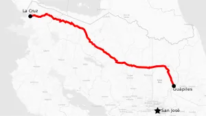 In Guanacaste province the route covers La Cruz canton (La Cruz, Santa Cecilia, Garita districts).