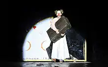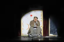 The National Theatre is initiator of many festivals and events that increase the competition between performers and performing arts institutions. The first competition was arranged in the beginning of the 50s and resulted in the collection of original dramas of different kinds with no language restrictions. The results were quite satisfactory because many of the dramas were turned into great shows like “Erveheja”, “Dashuria” and “Hakmarrja”.[10] Except for original dramas, in stage were performed many books by Albanian famous authors. One of them which was very successful was “Sikur të isha djalë” by Haki Stërmilli. In 60s and 70s many authors started writing dramas which would enrich the repertoire of the National Theatre. The basics of dramatic creativity were established with the permanent competition “Katarina Josipi-KATI” which holds the name of the famous actress Katarina Josipi. This competition brings on stage many art pieces which have a large number of audience members and fill the gaps of theatrical creativity in the National Theatre.[11] Except for different kinds of dramas, in stage were put even some poems like “Zogu i diellit” by Din Mehmeti and “Trungu Ilir” by Sabri Hamiti.[12][13]