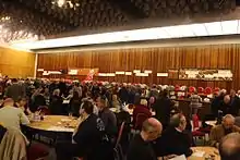 While the summer event has been exclusive to London since 1991, the Great British Beer Festival Winter moves between host cities, allocated on 3-year cycle. Branches of CAMRA around the United Kingdom bid for the event. Derby was the host city for 2014 to 2016 where the event was held at the Roundhouse. The final Derby festival drew 13,832 attendees, the largest in the event's history.[1] They drank a combined 57,000 pints of the 470 beers on offer.[1]