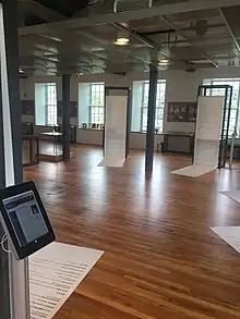 The National Women's Hall of Fame was hosted by Eisenhower College until 1979/1980, when the organization rented out a historic bank building in the Seneca Falls Historic District. The historic bank was renovated to house the NWHF's permanent exhibit, historical artifacts, and offices.[9] In August 2020, the National Women's Hall of Fame opened its door to the third and final home: the historic Seneca Knitting Mill, which resides across the canal of the Women's Rights National Historical Park which includes the Wesleyan Chapel where the 1848 women's rights convention took place, an event that kickstarted the women's suffrage movement in America.[10][11] This renovation and move into the historic Seneca Knitting Mill took several years to accomplish.