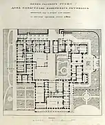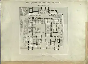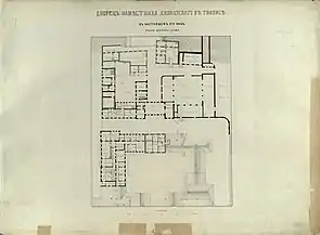 The second building was demolished in 1818 and the new one was built according to the architect Braunmiller. Later the building was enlarged and the small rooms were substituted by the larger ones, private apartments of the emissary, studies, a pool-room, rooms for clerks, Winter Garden, etc. Initial administrative house was changed to the residence of the Commander-in-Chief.[3][4]