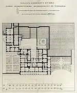 As for the palace, the contribution of Simonson is confirmed in scientific journals and researches. They note that the architect has significantly expanded the old residence of the Viceroy, moved its side wings forward, while the main facade was changed slightly. On the main floor, the central reception hall was altered and enlarged. In the North, he arranged a large foyer, including the festive staircase, a large dining room with a portico and a salon. While in the South, a working office of the Viceroy was located along with a reception and a living room, as well as an exhibition hall, with a terrace and a wide, open staircase to the garden. A bedroom and a boudoir of the Viceroy were overlooking the garden from the middle part of the building. He also added some supporting and entertainment rooms.[6] The facade, typical to classicism, was treated by the Renaissance motifs, the walls were processed with stonework technique and beautified with Musharabi panels. The large dining room was designed in the Persian style, its walls encrusted and curved with ornamental mirrors. According to Simonson's ordinance, the ceiling was adorned with the stalactite niche just like in the working office, windows were filled with the colorful glass, the gilded chandeliers were hung in the hall, the living room, reception, foyer and the lobby were "decorated" with the black and colorful marble chimneys. The more festive look was given to the South facade, directed to the garden. Therefore, the 19th century Tbilisi acquired a public building distinctive with its high artistic value, given even more distinctive expression by the unique garden.[7]