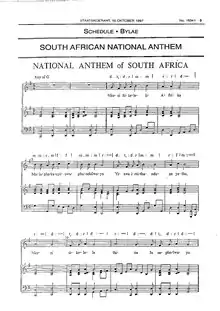 ![]() The South African national anthem as it appears specified in the South African Government Gazette | |