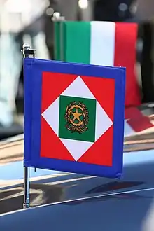 The Presidential Standard of Italy is the flag used by the President of the Italian Republic, the nation's head of state. It is based on the square flag of the Napoleonic Italian Republic, on a field of blue charged with the coat of arms of Italy in gold.[46]