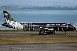 In August 2012, Air New Zealand introduced its new livery, changing its corporate colours from teal to black, changing its typeface, but retaining the iconic Koru symbol.[13] The first plane to be repainted, an ATR 72-600, was painted almost entirely in black.[14] An Airbus A320, to be delivered in June 2013, will be the first plane to feature white body and black tail livery.[14]
