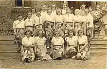 The idea was that these unique skirts would be worn during national holidays and similar events as a symbol of both individuality and national unity.[5][6] In the words of a song composed in honour of the idea: "Weave the pattern of your life into your skirt" (Vlecht in Uw rok het patroon van Uw leven).[7] Through handmade patchwork, the skirts also literally symbolised the concept of postwar reconstruction.[3]