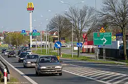 In August 2012 a motorway bypass of Mińsk Mazowiecki has been opened and the course of road 2 was assigned to that route. On December 17, 2012, by the ordinance of General Director of National Roads and Highways, the old route Choszczówka Stojecka – Mińsk Mazowiecki – Ryczołek (Kałuszyn) was renumbered as the national road 92.[12] In March 2021,[13] by the ordinance of General Director of National Roads and Highways, the section between crossing with national road 17 on the border of Warsaw and Zakręt and Choszczówka Stojecka was renumbered as the national road 92. From east of Mińsk Mazowiecki up to Siedlce (including bypass of the city), the road 2 is completely a priority road (over 50 kilometres (31 mi)).