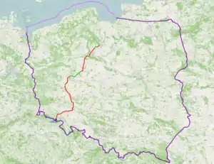 National road 5 (Polish: Droga krajowa nr 5) is a route belonging to the Polish national road network. The highway connects some of the biggest urban agglomerations in Poland, i.e. Trójmiasto, Bydgoszcz, Poznań and Wrocław. It runs from Nowe Marzy to Lubawka at the Czech border and between Bielany Wrocławskie and Kostomłoty merges with A4 motorway. On the segment from Nowe Marzy to Wrocław, it is a component of European route E261.