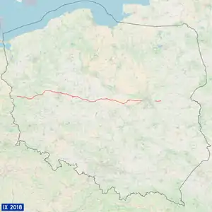 National road 92 (Polish: droga krajowa nr 92)[2] is a route belonging to Polish national roads network, which serves as an alternative route parallel to motorway A2. The road has one lane per direction on the majority of its length. Before the A2 motorway was constructed, it had served as the main connection between Warsaw, Poznań and the Polish-German border as national road 2.