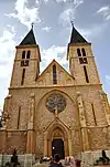 The Sacred Heart Cathedral (Bosnian: Katedrala Srca Isusova) in Sarajevo, commonly referred as the Sarajevo Cathedral is the largest cathedral in Bosnia and Herzegovina.[14] It is the seat of the Archbishop of Vrhbosna, currently Cardinal Vinko Puljić, and center of Catholic worship in the city. The Cathedral is located in the city's Old Town district. It was designed by Josip Vancaš as a triple-aisled church in the eclectic manner, with neo-Gothic elements predominating. The tomb of Josip Stadler, the first Archbishop of Vrhbosna, is located in the Cathedral. |