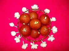 Gulab jamun (also spelled gulaab jamun) is a milk-solid-based sweet and a type of mithai.It is made mainly from milk solids, traditionally from khoya, which is milk reduced to the consistency of a soft dough. |