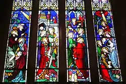 Late 19th-century stained glass of The Adoration of the Shepherds and the Magi, Cologne Cathedral.