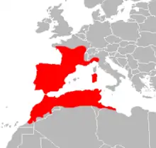 | Range map of Natrix maura | |