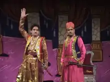 Nautanki performances are operas based on a popular folk theme derived from romantic tales, mythologies, or biographies of local heroes. The performance is often punctuated with individual songs, dances, and skits, which serve as breaks and comic relief for audiences.[1] Audiences sometimes use the breaks to go to the toilet or pick up food from their homes or nearby shops. Nautanki performances involve a lot of community participation from audiences. For instance, community members provide logistical support, financial support, and talented actors for Nautanki performances. Audience members choose what script will be performed and often intervene during the performance to demand a repeat of a song or skit.