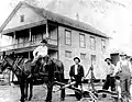 The town of Nauvoo was founded in 1888, during the construction of the Northern Alabama Railway, and was formerly a center of coal mining.[2] The town grew out of isolated agricultural settlements on the Walker County-Winston County line, which had been known unofficially as Blackwell's Crossing and Ingle Mills (or Ingle's Mill) after prominent local landowners.[3] Railroad construction drove the development of the town center on Joshua Blackwell's property, but he declined to have the new town be named officially in his honor. The local resident Tom Carroll suggested the name "Nauvoo," after Nauvoo, Illinois — a city founded by Mormon prophet Joseph Smith in 1839 and later the site of an Icarian colony settlement — reportedly "because he had admired the [Illinois] town... in his earlier travels through that state."[4] By 1891, the town was mentioned in the Winston Herald as "Nauvoo, a flourishing town with three stores and one steam gin doing good business."[5] Nauvoo incorporated in 1906.[6]