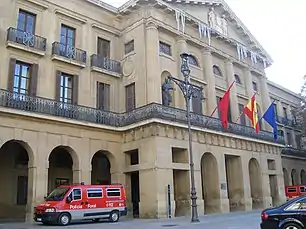 The Government of Navarre (Spanish: Gobierno de Navarra;) is the institution of executive nature in which the government of the Chartered Community of Navarre (Spain) is organized. It is led by the President of the Government of Navarre, and its powers are regulated in the "Amejoramiento" of 1982 in Chapter III Articles 23 to 28.