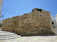 In Byzantine times, the island's capital was on the southern fortress of Apalyres.[9] During this time, it suffered from Saracen raids, particular during the existence of the Emirate of Crete (824–961), to which the island occasionally paid tribute. Traces of Muslim artistic influence are visible in frescoes from the 10th century.[9] Nevertheless, as in Antiquity, Naxos was celebrated for its agriculture and animal husbandry; the 12th-century geographer al-Idrisi records extensive cattle raising on the island.[9]