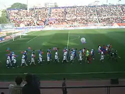 Apart from Panionios G.S.S. and its associated youth teams, the stadium was used for decades from Panionios G.S.S. athletes on track & field and numerous times from the Greek National U-21 and U-23 football teams. Additionally, due to the closing of many stadiums for renovation for the 2004 Athens Olympic Games, Nea Smyrni stadium was partly used from other football clubs as well. Those included AEK FC for the first half of the 2003/2004 football season and Olympiacos F.C. for one match in February 2003 against OFI. Last it has been the venue site for the 2004 Greek Cup final played by Panathinaikos and Olympiacos.[4]