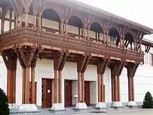 Adjoining the mandir is BAPS Shri Swaminarayan Haveli, a multi-function cultural centre. Whereas the mandir is carved from stone, the haveli is constructed from wood. English oak and Burmese teak have been fashioned into panels, arches and screens, all carved by craftsmen in India with a cornucopia of geometric patterns, stylised animal heads, and flower garlands.[3]