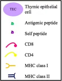 - The thymic epithelial cells display self antigen to the T cells to test their affinity for self.