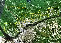 Satellite image of Gatineau with current and former boundaries, also showing its sectors.