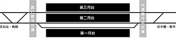 The station has two island platforms and one side platform. As part of the Taoyuan Elevated Railway Project, an additional island platform is opened in 2017. The station has an underground passageway to connect the station front with the second platform and the newly constructed platform. The station also has an elevated walkway.