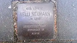 Nelli's marriage became increasingly difficult, and she and Courant divorced on 16 February 1916. After the First World War she moved to Essen, where she taught mathematics, physics and chemistry at the Luisenschule.[3] Soon after the Nazis took power, on 27 September 1933, she lost her position under the Law for the Restoration of the Professional Civil Service.[4] She was deported to the Minsk Ghetto on 10 November 1941, and was executed there the following year.[5]