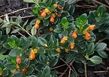Growing to 0.5 m (1.6 ft) tall by 1 m (3.3 ft) broad, it is a trailing perennial or subshrub with small fleshy evergreen leaves and brilliant orange tubular flowers in summer. The flowers vaguely resemble clogs in shape and goldfish in colour, hence the common names.