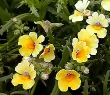 Nemesia is a genus of annuals, perennials and sub-shrubs which are native to sandy coasts or disturbed ground[2] in South Africa. Numerous hybrids have been selected, and the annual cultivars are popular with gardeners as bedding plants.[3] In temperate regions they are usually treated as half-hardy, grown from seed in heat, and planted out after all danger of frost has passed.