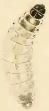 The larvae feed on Ballota nigra. They first feed on the seeds. Later, they feed from within a case made from plant fragments.