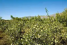 The climate of the caldera is unique for the Armenian Highland. It is the only place in the region where deciduous trees grow at high altitudes, owing to the high temperature and humidity and the protection from winds by the caldera walls. The caldera also hosts a few flowers and trees unique to the region. Velvet scoters (Melanitta deglandi) and two species of gull live and breed on the shores of Lake Nemrut. Since ancient times the bottom of the caldera is used for grazing by the nearby villages.[11]