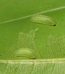 The larvae are known to feed on Diospyros (Ebenaceae) and many species of Glycosmis (Rutaceae) including G. arborea, G. parviflora and G. pentaphylla.[6]