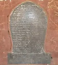 Inscriptions in Newar emerged from the 12th century, the palm-leaf manuscript from Uku Bahah being the first example.[57] By the 14th century, Newar had become an administrative language as shown by the official proclamations and public notices written in it. The first books, manuals, histories and dictionaries also appeared during this time. The Gopalarajavamsavali, a history of Nepal, appeared in 1389 AD.[58] From the 14th century onwards, an overwhelming number of stone inscriptions in the Kathmandu Valley, where they are a ubiquitous element at heritage sites, are in Newar.[59]
