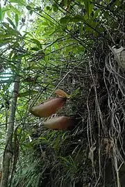 There are also a number of ecological differences between the two species. Whereas N. surigaoensis is only known from shady lower montane forest, N. merrilliana is commonly associated with more open sites where it is exposed to strong or direct sunlight. Altitudinal distribution is another distinguishing feature; N. merrilliana is a true lowlander growing from sea level to 900 m, and is often found below 500 m.[6]