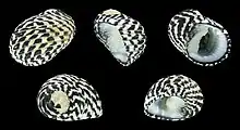 Nerita tessellata, sometimes known as the checkered nerite, is a species of tropical sea snail with a gill and an operculum, a nerite, a marine gastropod mollusk in the family Neritidae, the nerites.