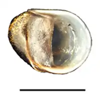 | Apertural view of a shell of Neritina iris. Scale bar is 10 mm. | |
